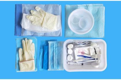 ·本产品由基本配置和选配产品组成:基本配置:一次性使用手术洞巾;选配产品:医用脱脂纱布一次性使用洽疗巾、一次性使用中单、医用绷带、一次性使用无菌手本膜、一次性使用敷料镊、医用胶带、医用棉球、性使用橡胶外科手套、医用外科口罩、一次性医用帽子、一次性使用手术衣、一次性医用垫、无菌塑柄手术刀、手术刀片、医用缝合针、非吸收性外科缝线、医用棉签、一次性使用吸痰管、一次性医用棉垫、一次性使用配药注射器、一次性使用手术单、托盘、药杯、仪器罩、换药碗、盆、刷、裤腿、剪刀、包布。